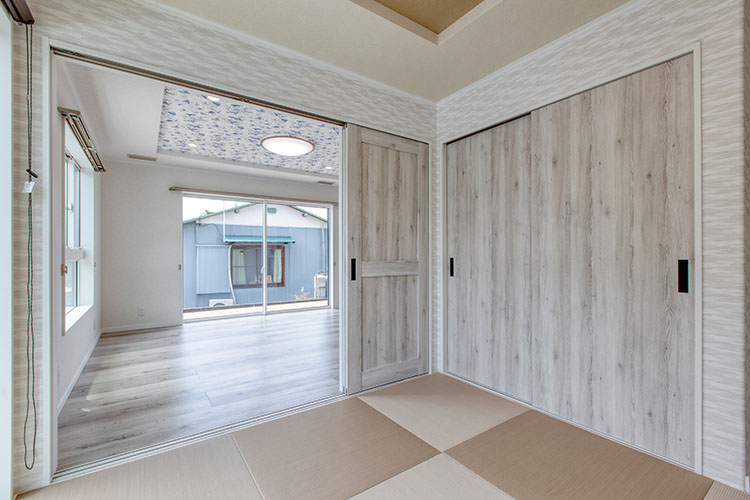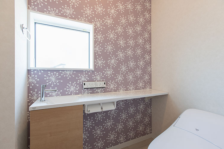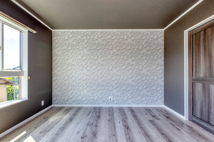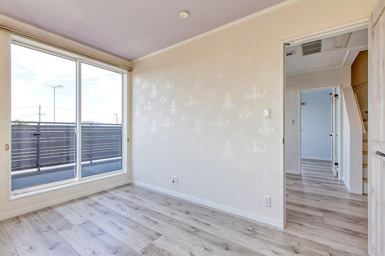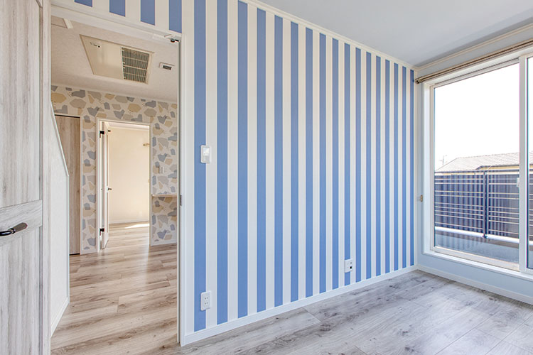 壁紙は家族それぞれに合わせてセレクト。各子供部屋は夢いっぱいの壁紙を、主寝室はご主人のセレクトで落ち着いたトーンに。ホワイトの枠で統一することで、全体の一貫性を持たせました。