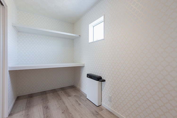 季節のものを収納する納戸は大きめのスペースを確保。窓付きにすることで、換気がしやすく、自然光が入るので部屋が明るくなりました。