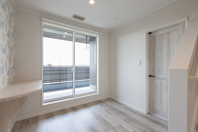 2階の陽当たりのいいベランダに面して設けたのが、多目的スペース。洗濯物を取り込んだり、アイロン掛けをしたり、さらには子供たちと過ごしたり。家族とのコミュニケーションが自然に生まれる場所となりました。