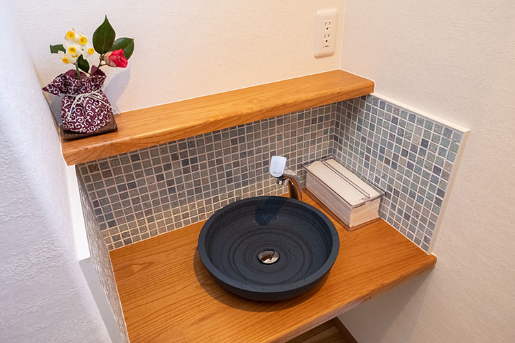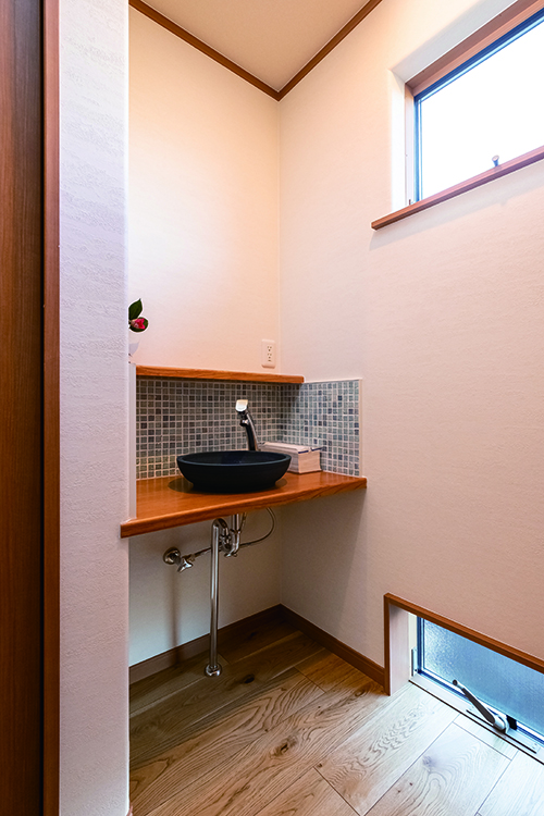 また、家事デスクや収納も造作で設置。雑多になりがちなスペースに統一感を持たせました。