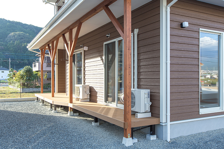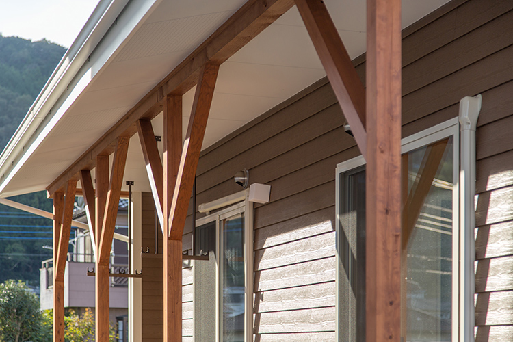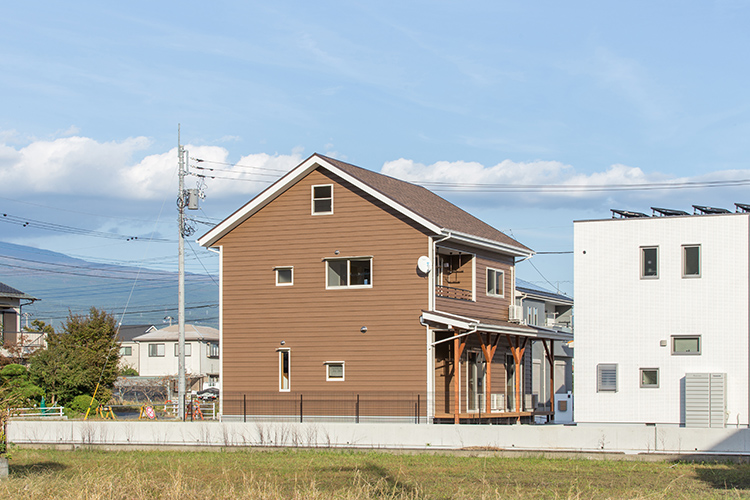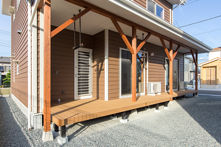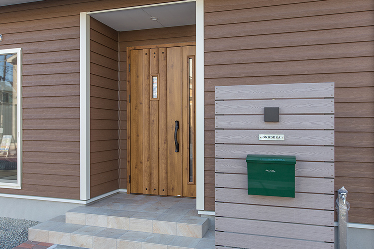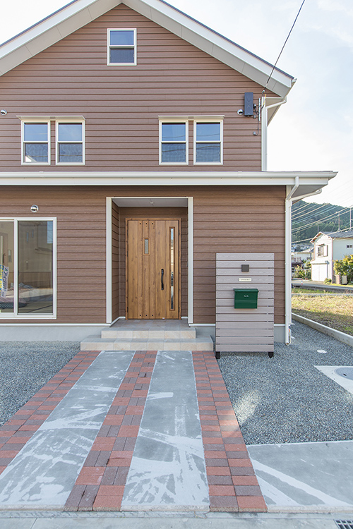 敷地入り口から玄関までのアプローチには、インテリアの雰囲気にマッチする素材としてブロック敷きを採用。テラスに設けた水道口や独立した郵便受けなど、実用性を求めながらデザイン心もプラスさせました。