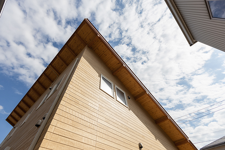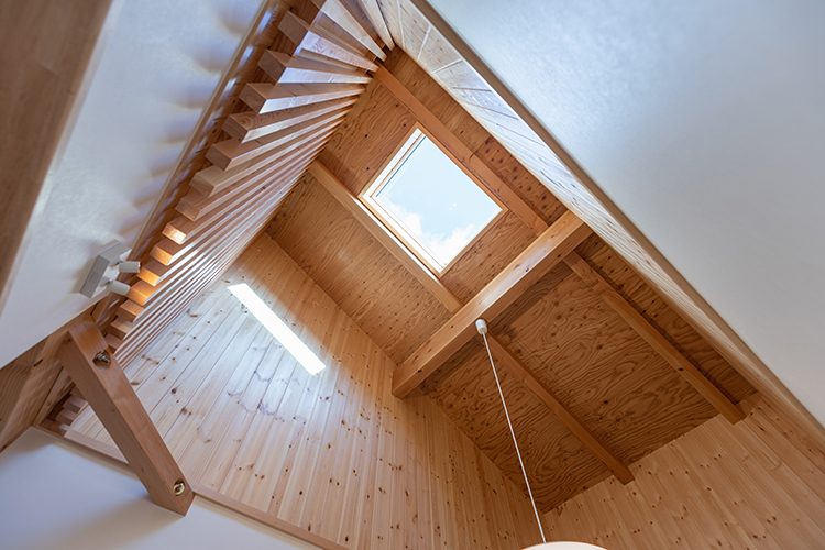 新築のイメージは垂木なども剥き出しのAyami建築工房の社屋。 家族で楽しく過ごせるよう山小屋風にしたい、また、断熱や蓄電池といった最新の技術も取り入れたいなど、たくさんのご希望も伺いながら、丁寧に反映させていきました。