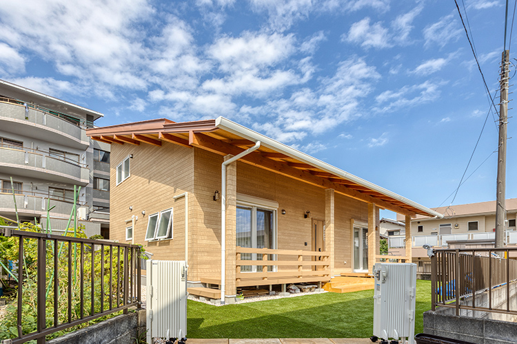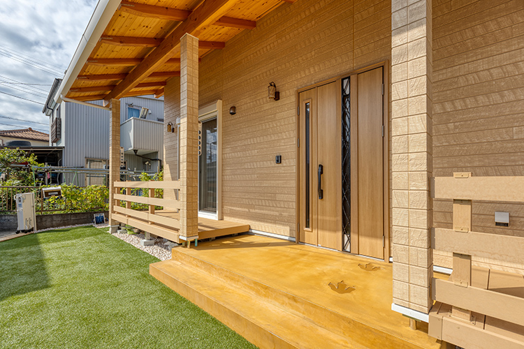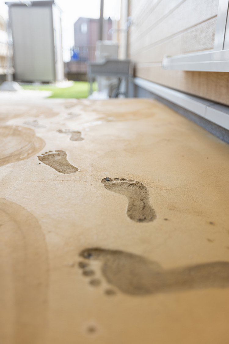 ファサードのウッドデッキは、部屋と部屋を繋ぐ動線にもなるユーティリティなスペース。お茶など楽しんだり、知人を呼んだり自在に活用できます。また、恐竜の足跡の他にお子さんの足跡がバックヤードに!趣向に富んだ作りとなりました。