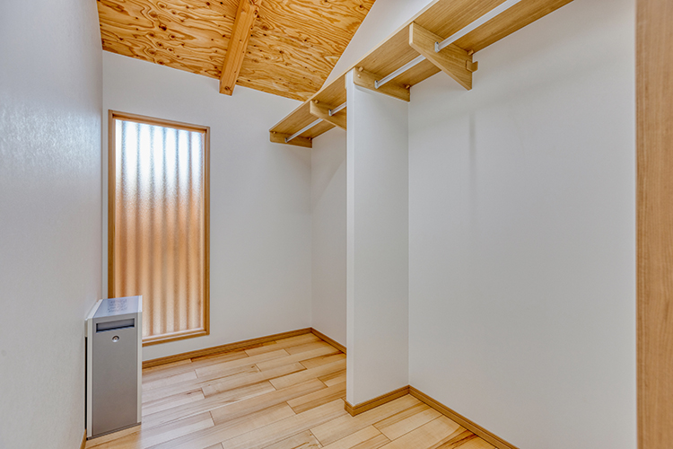 屋根は外断熱。高天井でも温度湿度が一定した一年中快適な高機能住宅となりました。また、太陽光発電も設置。その電気を貯めて、必要なときに使用できるよう設置しました。補助金申請はAyami建築工房で提案。資金面でもご相談承りました。